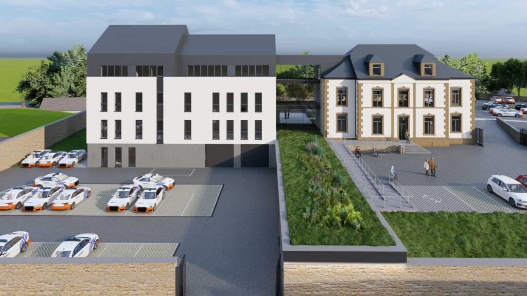 Le projet de construction du nouvel Hôtel de Police de la Zone de Police de Gaume à Virton évolue avec un rythme soutenu et nous vous partageons quelques photos 3D du futur projet.