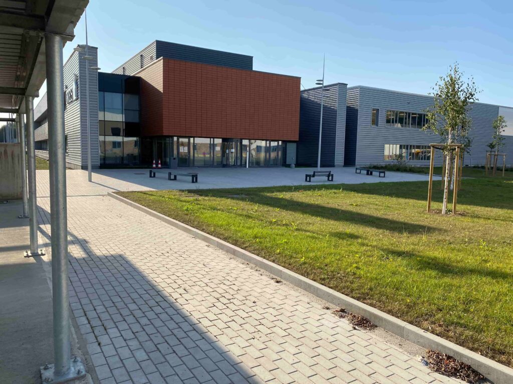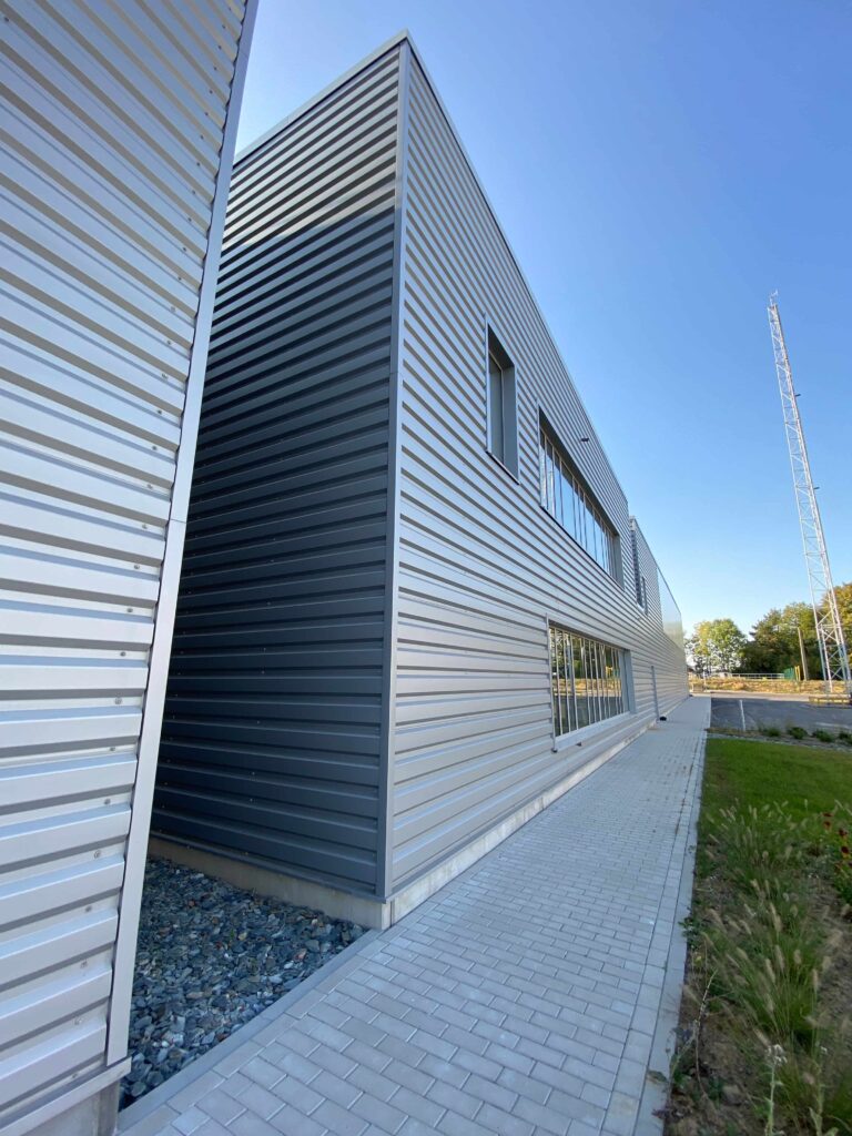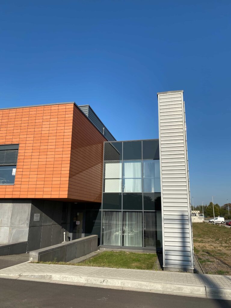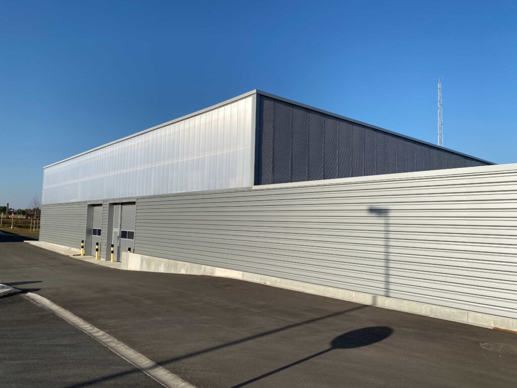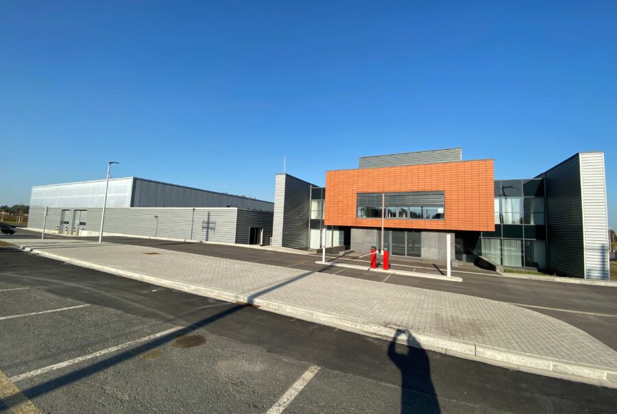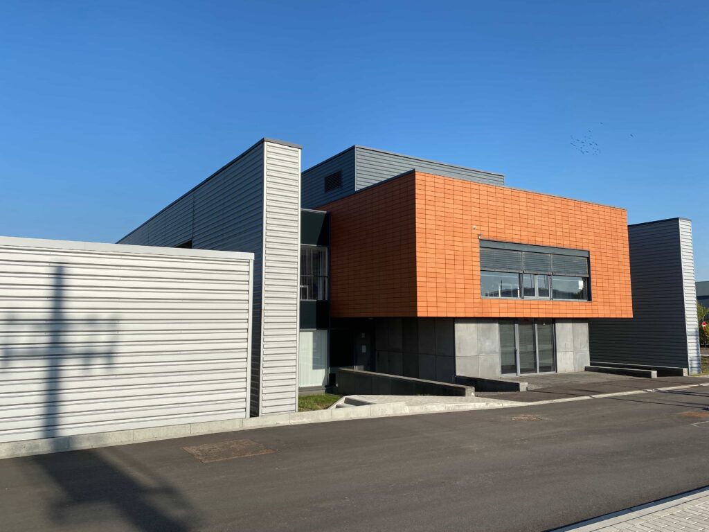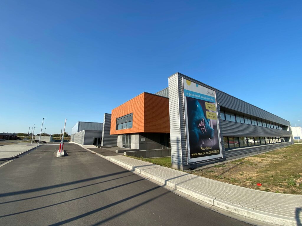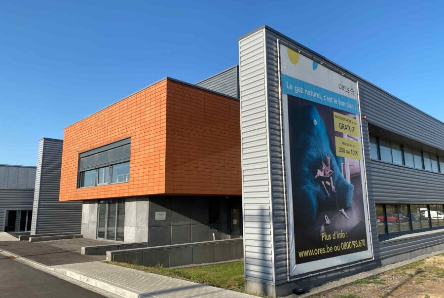 Il s’agit de la construction d’un nouveau bâtiment pour la société Ores. Ce bâtiment mixte comprend une partie rénovation (partie bureau) et nouvelle construction (partie hall).