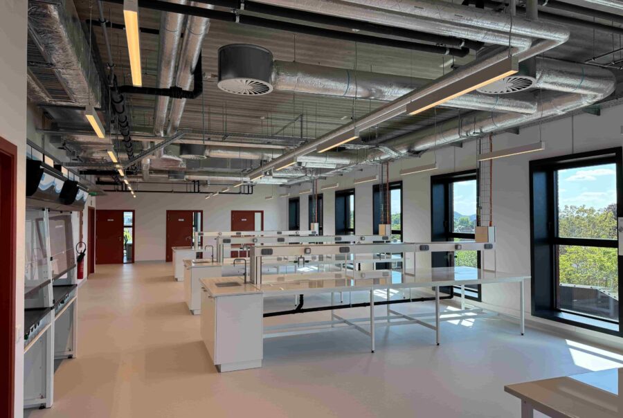 Il s’agit d’un Immeuble de laboratoires, locaux d’enseignement et bureaux (recherche). Ce projet présente la particularité d’être l’un des premiers bâtiments de cette ampleur construit en Wallonie avec les normes DNSH mesurées à travers le triptyque : PEB + TOTEM + GRO.